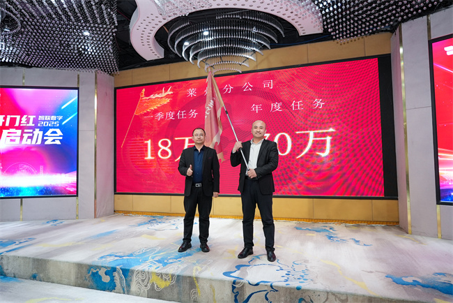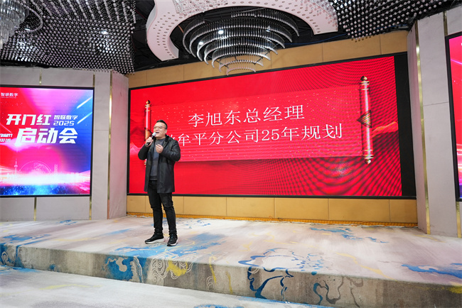 牟平分公司總經(jīng)理李旭東,在大會上講述了牟平分公司的主要業(yè)務(wù)是從傳統(tǒng)的被動獲客到主動獲客的轉(zhuǎn)化,利用Ai、大數(shù)據(jù)、云計(jì)算等技術(shù),實(shí)現(xiàn)對客戶的上下游的主動獲客的觸達(dá),同時也制定了牟平分公司的25年任務(wù)進(jìn)行了宣誓。